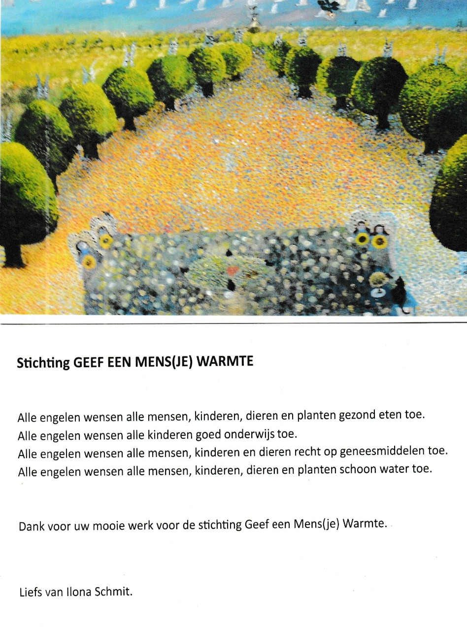 Giften zijn altijd van harte welkom op rekening NL35RABO0331539217 tnv geef een mens(je) warmteLiefs van IlonaVolg het licht in je hart. Ilona Schmit. Schilderij 13 x 18 cm. 2020